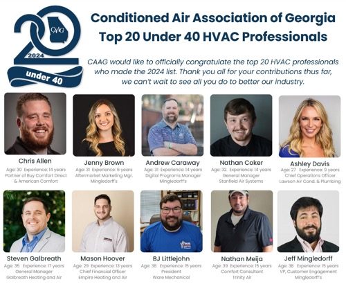 The Conditioned Air Association of Georgia (CAAG), a statewide, non-profit trade association, has announced their “Top 20 Under 40” List, a collection of “rising stars and influencers under 40 who are shaping the future of the HVAC industry.”